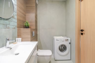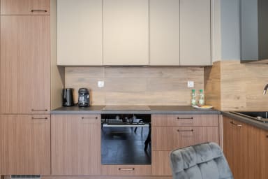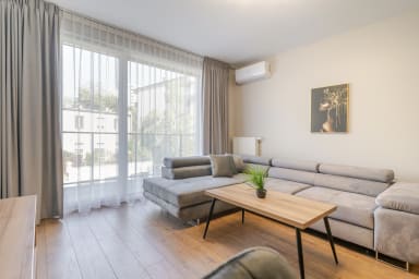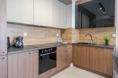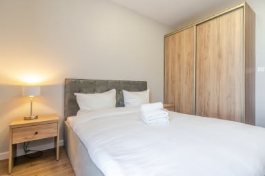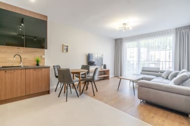 Słoneczna Harmony Stay 37A Apartment features a living room with a sofa bed and kitchenette, a bedroom with a comfortable king-size bed, a bathroom, and a spacious balcony where guests can relax and enjoy a morning coffee or an evening glass of wine. Guests have access to a range of amenities including free WiFi, a TV, washing machine, iron, hairdryer, dishwasher, induction hob, oven, fridge with freezer, coffee machine, kettle, and kitchenware. The apartment also has air conditioning, providing great comfort especially during hot days. A parking space in the underground garage is also available for guests.