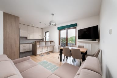 Krasińskiego Deluxe Apartment is a spacious and comfortable four-room apartment, ideal for families or groups of friends. It comprises three cozy bedrooms, a spacious living room with a modern kitchenette, and an elegant bathroom. Guests also have access to a balcony, perfect for morning coffee or a moment of relaxation after a busy day.