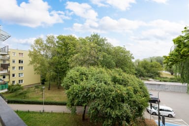 Afrykańska Deluxe Apartment is located in the popular district of Warsaw – Praga Południe, near the picturesque Vistula River. In the neighborhood, there are vast green areas such as Skaryszewski Park and Kamionkowskie Błonia Elekcyjne, which are popular among sports and recreation enthusiasts, offering numerous cycling and walking paths, jogging routes, and an outdoor gym. The PGE National Stadium, which hosts numerous sports as well as entertainment events, is just a 30-minute walk away. The stadium also offers guided tours, where visitors can step onto the pitch, see the players’ locker rooms, VIP lounges, and hear fascinating stories about the venue. Nearby, you will also find PROM Kultury Saska Kępa – a unique place in Warsaw’s Saska Kępa district, serving as a cultural, artistic, and social center. It is a space where lovers of art, culture, and creativity come together. The area is full of shops, restaurants, cafes, service points, and entertainment venues. The apartment’s location provides easy access to the city thanks to numerous bus stops (Międzynarodowa, Saska, Ateńska).