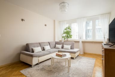 Krochmalna Spacious Apartment features a living room with a sofa bed and a kitchenette, two separate bedrooms (one with a comfortable double bed and the other with a sofa bed), a bathroom, a toilet, and a small cozy balcony where guests can relax and enjoy their morning coffee or an evening glass of wine. Guests have access to a wide range of amenities that ensure a comfortable and pleasant stay, including free Wi-Fi, cable TV, an iron, a washing machine, a hairdryer, a dishwasher, an induction hob, an oven, a microwave, a coffee maker, a toaster, a kettle, and kitchenware. Guests can also use a public outdoor parking lot near the building, without guaranteed parking spots and with a possible additional fee.