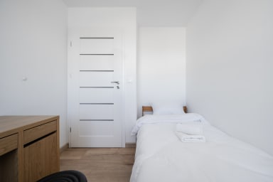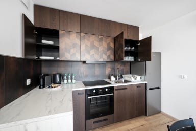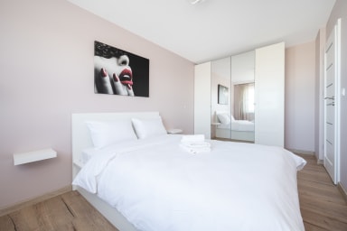 Piłsudskiego Central Apartment features a living room with a kitchenette and a fold-out sofa, a bedroom with a double bed, a second bedroom with two single beds, a bathroom, and a balcony — the balcony is a highlight, offering a pleasant outdoor space to relax. The apartment is equipped with Wi-Fi, a television, refrigerator with freezer, stove, oven, kettle, microwave, and a capsule coffee machine. Guests also have access to an iron, a vacuum cleaner, and a hairdryer. The apartment is also equipped with air conditioning, providing exceptional comfort, especially on hot days. A guaranteed parking space is available for added convenience.