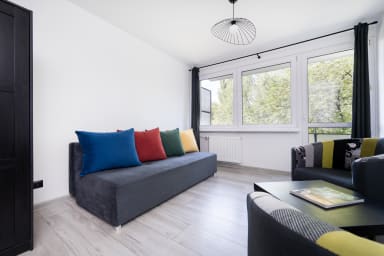 The apartment is surrounded by numerous green areas, ideal for spending free time actively. Just a 12-minute walk takes you to Szare Szeregi Park – a great space for jogging, walking, or relaxing among the trees. Less than a 20-minute walk leads to the picturesque Adam Mickiewicz Park, where you can stroll along the alleys, rest on a bench with a book, or enjoy the charm of urban greenery.