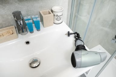 At the beginning of the stay, a starter set of basic toiletries is provided, such as toilet paper, soap, shampoo, and shower gel, in an amount sufficient for the first few days. For full comfort during longer stays, it is recommended to bring your own additional supplies.