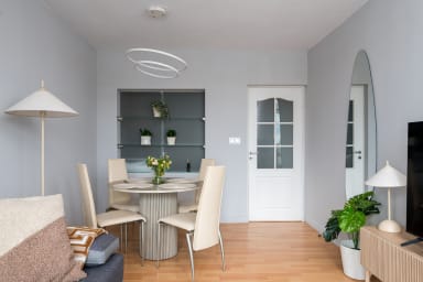 Mokotów Skyline Panorama Apartment is located at 111 Puławska Street, in one of Mokotów’s most prestigious areas, close to the center of Warsaw. The location offers a peaceful residential atmosphere while remaining well connected to the city’s main points of interest. In the vicinity, there are numerous green spaces and parks, including Dreszer Park (between Puławska, Krasickiego, and Odyńca streets) and the Morskie Oko / Szustrów / Promenada park complex — perfect for walks, jogging, or relaxing in nature. Mokotów is known for its abundance of recreational areas, such as Pole Mokotowskie. Within walking distance, guests will find a variety of shops, delis, cafés, and restaurants — from cozy local venues to more refined dining spots. The district is also home to Galeria Mokotów — one of the larger shopping centers in Warsaw, offering extensive retail, cinema, and dining options. Thanks to excellent public transportation, the location is very well connected. Bus and tram stops are scattered along Puławska and nearby streets. Metro stations (for example, Metro Wilanowska) are reachable within minutes. Bus and tram lines from Puławska provide direct access to the city center, Royal Łazienki Gardens, the central districts, and the main railway station. By public transport, the route to the Old Town Market Square takes about 20–25 minutes. Guests at the apartment enjoy convenient access to Warsaw’s major attractions — the Old Town, Łazienki, museums, and theaters.