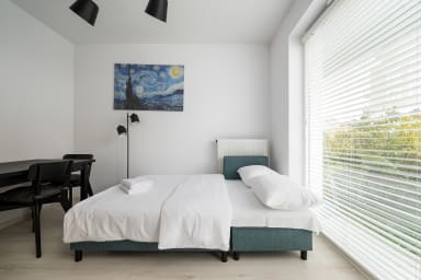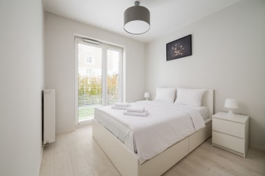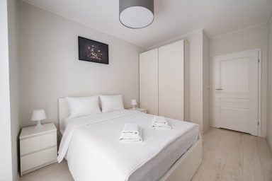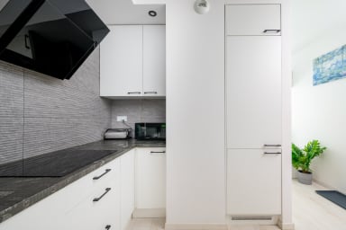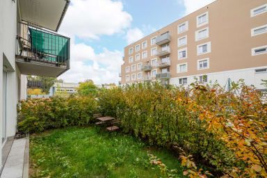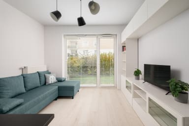 Marywilska Apartment with Garden offers a practically and stylishly furnished living room with a sofa bed and kitchenette, a bedroom with a comfortable double bed, a bathroom, and a private garden where guests can relax and enjoy their morning coffee or an evening glass of wine. Guests have access to various amenities, including free Wi-Fi, cable TV, a hairdryer, an iron, a washing machine, a fridge with a freezer, an oven, a dishwasher, an induction hob, a microwave, a kettle, a Nespresso coffee machine, and kitchen accessories. The apartment also includes an outdoor parking space.