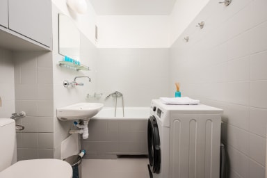 Close to the apartment, you will find the Expo XXI Exhibition and Conference Center, the Warsaw Gasworks Museum, and the Warsaw Uprising Museum. The surrounding area also offers various shops (Żabka, Carrefour Express, Top Market, Biedronka, Stokrotka, Auchan Go), cafés (Costa Coffee, Aroma Speciality Coffee, Kawalerka), restaurants (Babcia Włoszka, Casa Mia Pasta Fresca & Pizza, First Floor, Viva Bistro), service points, and entertainment venues. The apartment is very well connected thanks to numerous bus and tram stops, as well as the Warszawa Wola railway station, making it easy for guests to reach all attractions Warsaw has to offer.