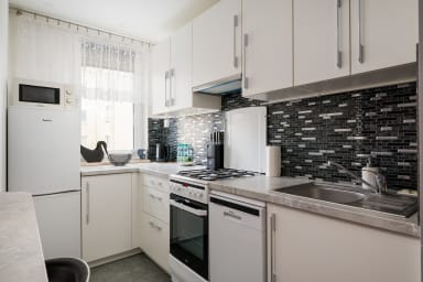 Warszawa Wola Homely Apartment features a living room with a kitchenette and a sofa bed, two separate bedrooms, a bathroom, and a balcony where guests can relax and enjoy their morning coffee or an evening glass of wine. Guests have access to a range of practical amenities, including free Wi-Fi, terrestrial TV, a washing machine, iron, hairdryer, dishwasher, oven, microwave, fridge with freezer, toaster, kettle, and kitchen utensils. A private outdoor parking space is also available for guests.