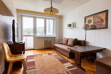 Wyspiańskiego Seaside Apartment comprises a living room with two sofas, a separate kitchen, a bathroom and a balcony — the balcony is a meaningful asset, offering a space for fresh-air relaxation.. Guests also have access to free Wi-Fi, cable television, refrigerator with freezer, gas stove, oven, kettle, toaster, and washing machine. Additionally, there is an iron, vacuum cleaner, and hair dryer. At the start of your stay, a starter set of toiletries is provided — toilet paper, soap, shampoo, and shower gel. The supply is limited and intended for the first days of your visit — to ensure full comfort, guests are encouraged to replenish supplies as needed.