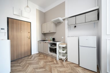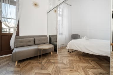 Nawrot Modern Apartment is an elegant and contemporary space designed for comfort and convenience. It consists of a stylish living room with a sofa, providing a comfortable place to relax and unwind, and a fully equipped kitchenette. The separate bedroom features a large, comfortable double bed ensuring restful sleep and privacy, while the modern bathroom is fitted with a bathtub and high-quality fixtures to guarantee everyday comfort. The apartment also features a balcony, perfect for enjoying a morning coffee or an evening glass of wine.