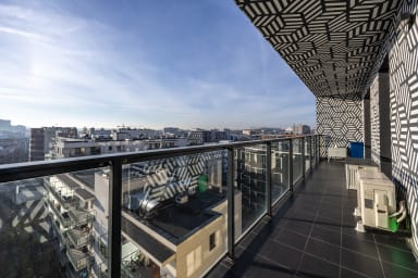 The Yellow Soho Factory Elegant Apartment is a unique place combining modern design with the coziness of home. The apartment consists of a stylishly furnished living room with a kitchenette, an elegant bedroom with a comfortable double bed, a modern bathroom, and a spacious balcony with a stunning view of the city skyline and the National Stadium. It's the perfect place to start the day with a cup of aromatic coffee or relax in the evening with a glass of wine while admiring the illuminated city.