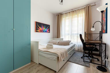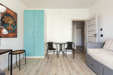 Lema Apartment with Garden is located at Stanisława Lema Street 7 in Gdańsk – in a modern district that perfectly combines a peaceful atmosphere with the convenience of a well-developed urban infrastructure.