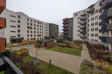 Nearby, the apartment boasts numerous recreational areas, including the picturesque Skaryszewski Park, Kamionkowskie Błonia Elekcyjne (Election Meadows), Polińskiego Park, and Praga Armii Krajowej District Park – perfect for walks, jogs, picnics, or morning coffee amidst the greenery. Active enthusiasts will also find bike paths, outdoor gyms, a ropes course, and a playground for children. In summer, the area delights with its lush vegetation, and in autumn, with the warm, golden hues of the trees.