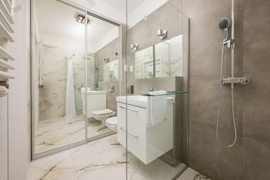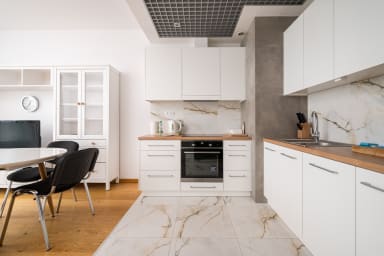 Kolska Spacious Apartment is an excellent choice for those seeking a comfortable stay in Warsaw, located in a peaceful yet well-connected part of the city at Kolska Street 9a. The location makes the apartment a perfect base for both business travelers and tourists eager to explore the charms of the Polish capital. In the immediate vicinity, you will find some of Warsaw’s largest shopping centers – Westfield Arkadia and Dom Mody Klif – offering a wide selection of shops, restaurants, cafés, and entertainment options. These are great places not only for shopping but also for spending time in a pleasant atmosphere, enjoying the city’s vibrant culinary and cultural scene. The district also encourages an active lifestyle, with numerous walking areas, outdoor gyms, and cycling paths nearby. Not far from the apartment lies Powązki Cemetery – one of Poland’s most important national memorial sites, admired for its unique architecture and serene atmosphere. Several of Warsaw’s most significant historical landmarks are also located nearby. Just 2.5 kilometers from the apartment is the Warsaw Uprising Museum – a modern and engaging exhibition dedicated to one of the most important events in Poland’s history, powerfully depicting the heroism of the city’s residents during the 1944 uprising. About 2 kilometers away is the POLIN Museum of the History of Polish Jews, an essential center of remembrance and dialogue that presents a thousand years of Jewish history in Poland. Approximately 3 kilometers from the apartment stands the Royal Castle – a Baroque masterpiece, former royal residence, and a symbol of national identity, featuring richly decorated interiors and an impressive art collection. In terms of public transportation, the apartment’s location is exceptionally convenient. Numerous bus and tram stops nearby provide easy access to the city center and other districts of Warsaw. The Warszawa Powązki railway station is only a short walk away, offering efficient connections both within the capital and to other cities in the region. The neighborhood also offers excellent everyday amenities – grocery stores, service points, charming cafés, and restaurants serving cuisine from around the world are all within walking distance. Guests can fully enjoy the vibrancy of city life while still being able to relax in a calm and comfortable setting.