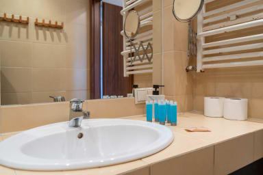 To ensure a comfortable start to your stay, a basic set of hygiene items — toilet paper, soap, shampoo, and shower gel — is provided. Please note that quantities are limited and intended for the first few days only. For longer stays, we recommend stocking up on additional products according to your needs.