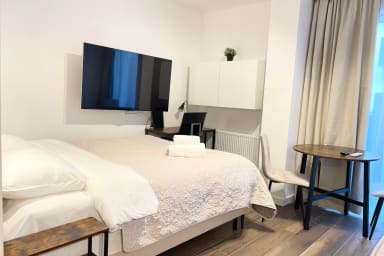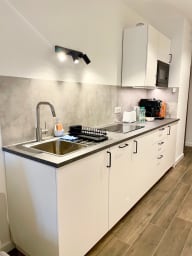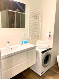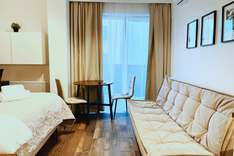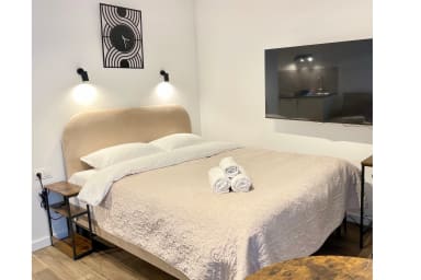 Zygmunta Standard Studio consists of a living room with a sofa bed and a double bed, a fully equipped kitchenette, and a bathroom. The apartment is air-conditioned — a great advantage, especially during warmer days. Additional amenities include Wi-Fi, a television, refrigerator with freezer, dishwasher, induction cooktop, microwave, toaster, espresso machine, kettle, and washing machine, as well as an iron, vacuum cleaner, and hairdryer. To ensure a comfortable start to your stay, a set of basic toiletries — including toilet paper, soap, shampoo, and shower gel — is provided. However, please note that the quantity is limited and intended for the first few days only. For full comfort, we recommend purchasing additional products as needed. Guests also have access to parking on site, without a guaranteed space and with possible additional charges.
