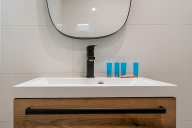 A starter set of essential toiletries — toilet paper, soap, shampoo, and shower gel — is provided for the beginning of the stay. Please note that the quantity is limited and intended for the first days only; for full comfort, we recommend purchasing additional items according to your needs.