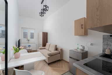 Aleja 29 Listopada Cozy Studio is an apartment located in the Kraków district near Górka Narodowa. Górka Narodowa is a picturesque hill and a popular recreational spot for both locals and visitors. It offers beautiful views of the city skyline, including Wawel and the charming church complexes. It is an ideal place for a walk, a picnic, or a peaceful moment away from the bustle of the city. Not far from the apartment, less than two kilometers away, lies Białoprądnicki Park with its historic manor house and the Białoprądnicki Waterfall. The park features numerous walking paths surrounded by lush greenery, perfect for strolls and nature outings. Visitors can also enjoy picnic areas, playgrounds, sports fields, and running routes, making it a great outdoor destination for families and active guests. In the immediate vicinity, there are various shops, restaurants, service points, and the local marketplace Plac Imbramowski. The apartment benefits from excellent public transport connections thanks to nearby bus and tram stops.