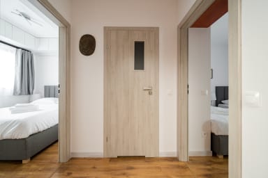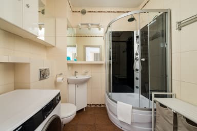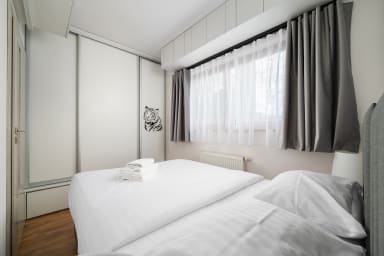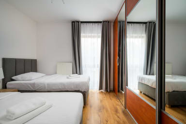 Bemowo 2-Bedroom Apartment is an elegant apartment located in one of the fastest-growing districts of Warsaw – Bemowo, at 10C Wrocławska Street. The location offers excellent conditions for both work and relaxation, making it an ideal choice for visitors traveling to the capital for leisure or business. Nearby, you will find numerous green areas such as Lasek na Kole and Fort Bema – peaceful and quiet places perfect for walks, jogging, or cycling, offering a moment of respite from the bustle of the city. Just a few minutes from the apartment is the Wola Park Shopping Mall, which offers a wide selection of shops, restaurants, cafés, and a cinema, providing entertainment and shopping opportunities in one place. The area also features many public transport stops, offering quick and convenient access to the city center. Guests have access to numerous bus and tram stops, the Ulrychów metro station, and the Warszawa Koło railway station.