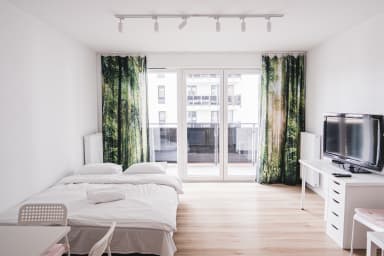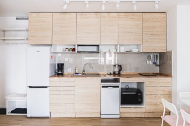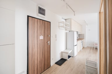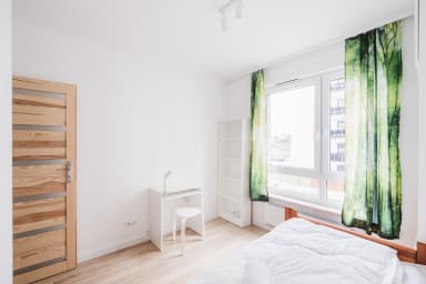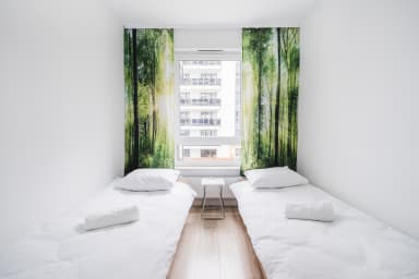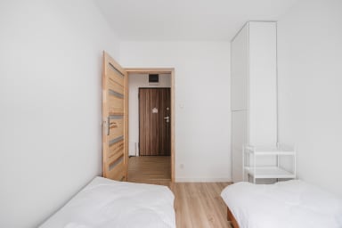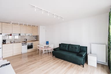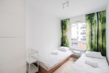 Lubicka 69 Urban Retreat Apartment is a cozy and well-arranged space featuring a living area with a sofa bed and a kitchenette, two separate bedrooms with single beds, a bathroom, and a spacious balcony where guests can relax and enjoy a morning coffee or an evening glass of wine. Guests have access to a range of practical amenities, including free Wi-Fi, cable TV, an iron, a hairdryer, a fridge with freezer, a dishwasher, an induction hob, an oven, a microwave, a drip coffee maker, a kettle, and kitchen utensils. A parking space in the underground garage is also available for guests.