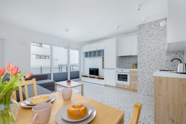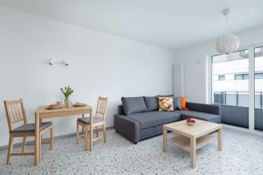 The apartment’s neighborhood is calm and safe, making it ideal for business travelers, couples, or anyone seeking a peaceful place to relax. At the same time, excellent public transport connections ensure that both tourist and recreational attractions in Szczecin are easily accessible, with a quick trip to the city center allowing full enjoyment of what the city has to offer.