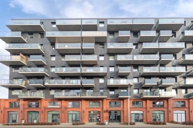 Mieszczańska Riverfront Apartment is located in the very heart of Wrocław, on Kępa Mieszczańska — the city’s largest and greenest island.