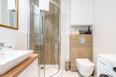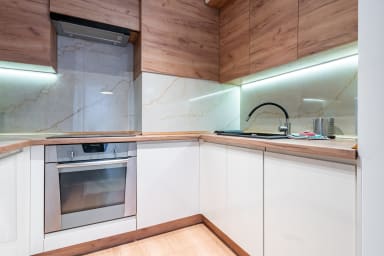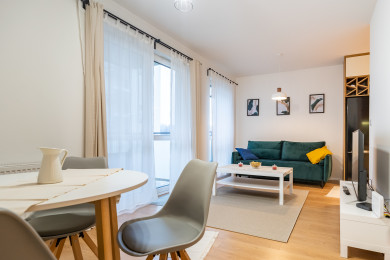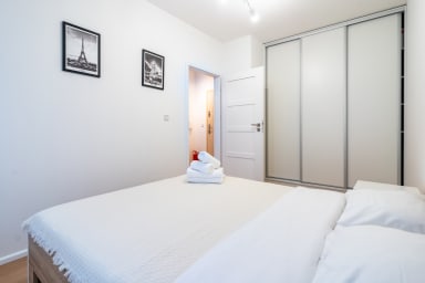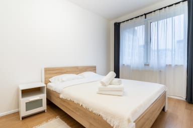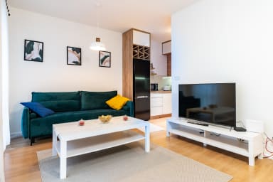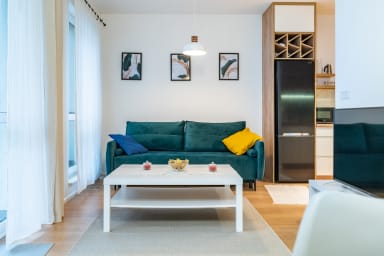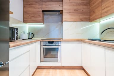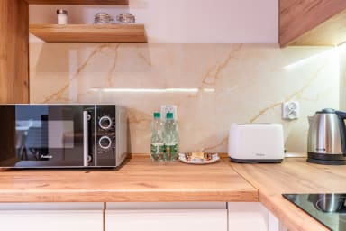 Szurmana Modern Stay Apartment is a stylishly furnished space featuring a living room with a sofa bed, a kitchen, a bedroom with a comfortable double bed, a bathroom, and a balcony where guests can relax with a morning coffee or an evening glass of wine. Guests have access to a wide range of amenities, including high-speed Wi-Fi, television, a washing machine, iron, hairdryer, induction hob, oven, microwave, kettle, toaster, fridge with freezer, and kitchenware. Parking is also available for guests, although spaces are not guaranteed.