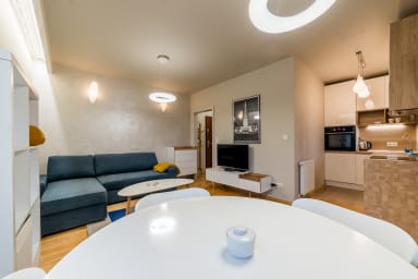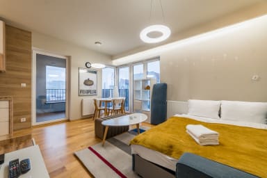 Gąsiorowskich Cosy Studio features a living area with a sofa bed and a kitchenette, a bathroom, and a spacious balcony where guests can relax and enjoy a morning coffee or an evening glass of wine. Guests have access to a range of practical amenities, including free WiFi, cable TV, a refrigerator, an oven, a washing machine, an iron, a hairdryer, an induction cooktop, a kettle, and kitchen accessories.