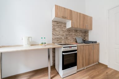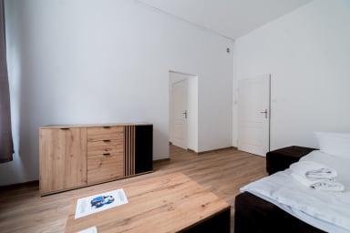 Mostowa Standard Apartment is a functional apartment offering two rooms with sofa beds, a kitchen, and a bathroom. The space was designed with a comfortable stay in mind for couples, families, and business travelers.