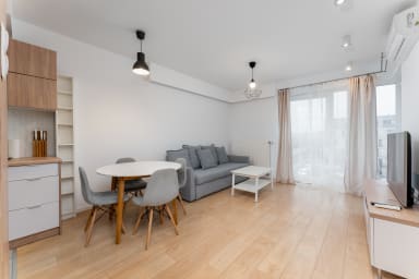Siewna Homely Apartment is a comfortable and cozy apartment featuring a living room with a sofa bed and kitchenette, a bedroom with a comfortable double bed, a bathroom, and a balcony. The balcony is the perfect place to relax, enjoy your morning coffee, or an evening glass of wine.