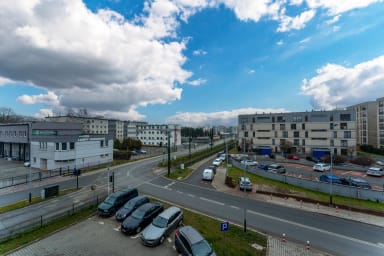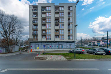 Nearby, you'll also find various shops, restaurants, services, and the Plac Imbramowski marketplace. The apartment is well-connected thanks to nearby bus and tram stops, as well as the S7 expressway. This allows guests to easily reach all of Krakow's attractions.