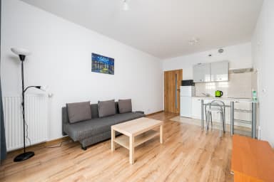 Bokserska Apartment with FREE Parking features a living room with a sofa bed and kitchenette, a bedroom with a sofa bed, a bathroom, and a spacious balcony where guests can relax with a morning coffee or an evening glass of wine. The apartment offers a range of high-quality amenities, including free WiFi, a hairdryer, an iron, a washing machine, a fridge with freezer, an induction cooktop, a microwave, a toaster, a kettle, and kitchen utensils. Guests also have access to a parking space in the underground garage.