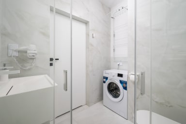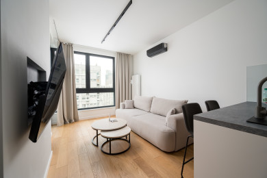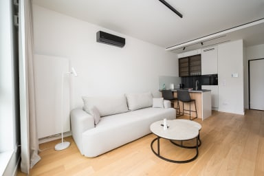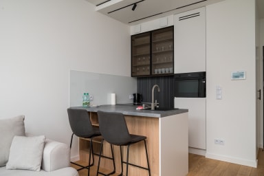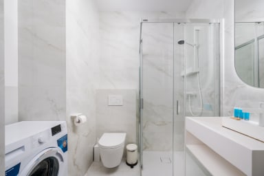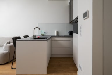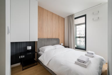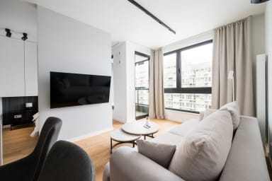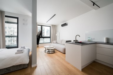 Grzybowska 12th Floor Comfort Apartment is a highly stylish and modernly furnished space featuring a living room with a sofa bed and a kitchenette, a bedroom with a comfortable double bed, a bathroom, and a balcony offering an amazing city view from the 12th floor. Guests can relax there while enjoying a morning coffee or a glass of wine in the evening. The apartment is equipped with numerous amenities, including free Wi-Fi, a TV, a washing machine, an iron, a hairdryer, a fridge with a freezer, a dishwasher, an oven, a microwave, an induction hob, and kitchen accessories. Additionally, the apartment is air-conditioned, ensuring exceptional comfort, especially on hot days. Parking is available for guests; however, a parking space is not guaranteed and additional fees may apply.