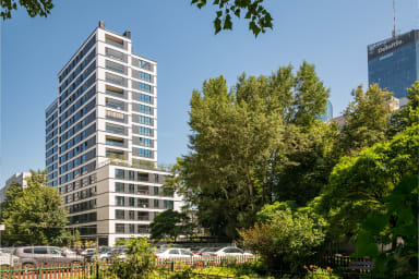 The surrounding area offers a vast number of cultural attractions, galleries, and museums, as well as the popular Browary Warszawskie complex, making it hard to get bored in this district. Nearby attractions worth visiting include the Norblin Factory, the Cosmos Museum, and the Warsaw Uprising Museum. The neighborhood is rich in shops (Żabka, Biedronka, Top Market, Carrefour Express, Nostalgia), cafés (Green Caffe Nero, Starbucks, Costa Coffee, La Lucy, Cofix), restaurants (Food Town at Norblin Factory, Casa Ristoranti, Street Restauracji, Restro, Chmielarnia, Ukrainian Restaurant U Sióstr, RASOI, Pełną Parą on Sienna Street, Portobello), and various service points. The location allows for easy transportation thanks to numerous bus and tram stops (Mennica, Aleja Jana Pawła II, Rondo ONZ, Norblin), metro stations (Rondo ONZ, Rondo Daszyńskiego), and Warsaw Central Railway Station.