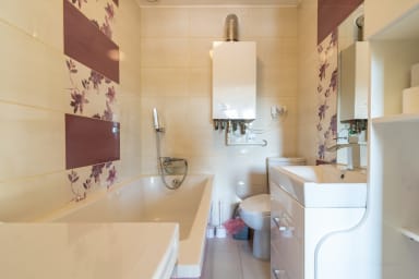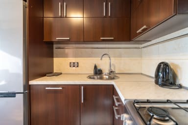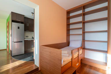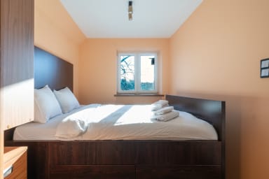 Bielsko-Biała Comfort Apartment is an exceptionally cozy apartment featuring a living room with a sofa bed, a bedroom with a comfortable double bed and single bed, a kitchen, and a bathroom. It offers a range of amenities, including high-speed Wi-Fi, a washing machine, a hair dryer, an iron, a fridge with freezer, a dishwasher, a gas stove, an oven, a kettle, and kitchen accessories. Parking is also available for guests, subject to availability (no guarantee of a parking space).