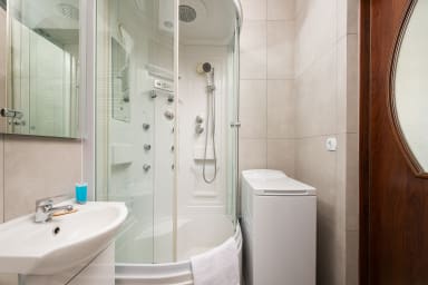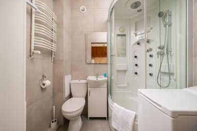 Praga Grajewska Comfort Studio is an apartment located in the popular Praga-Północ district. Nearby you will find the Praga Koneser Center, the Polish Vodka Museum, and the Mała Warszawa theatre. A pleasant 30-minute walk takes you to Praga Park, known for its rich vegetation, numerous trees and flowers. The park offers walking paths, lawns, and peaceful corners to relax. In the center lies the picturesque Kamionkowskie Lake — a perfect spot for fishing, strolling along the shore, or taking a boat ride. Right next to the park you can visit the Warsaw Zoo, home to around 500 different animal species. In the immediate vicinity you will also find various shops, cafés, restaurants, entertainment venues, and the shopping center Galeria Wileńska. The location provides excellent transport connections thanks to multiple bus and tram stops (Śnieżna, Kawęczyńska-Bazylika, Wojnicka, Zajezdnia Praga), the metro station Wileński, and the railway stations Warszawa Wileńska and Warszawa Wschodnia.