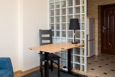Praga Grajewska Comfort Studio is a practically furnished apartment that features a room with a single bed and a desk, perfect for studying or remote work, a kitchen, a bathroom, and a balcony where guests can relax and enjoy a morning coffee or an evening glass of wine. The apartment is also equipped with an exercise ladder, allowing guests to perform basic stretching and strengthening workouts without leaving the apartment. Guests have access to a range of convenient amenities, including free Wi-Fi, an iron, a washing machine, a hairdryer, an oven, a fridge with freezer, a toaster, a coffee maker, a kettle, and kitchenware.