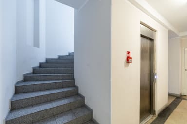 The apartment is located on the 4th floor of the building; the elevator only reaches the 3rd floor, so guests need to use the stairs for the final floor.