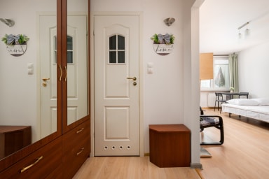 The Bielany district is charming, blending tradition and modernity. Around the apartment, guests can find a variety of shops, service points, restaurants, and cafes offering diverse cuisine and a cozy atmosphere.