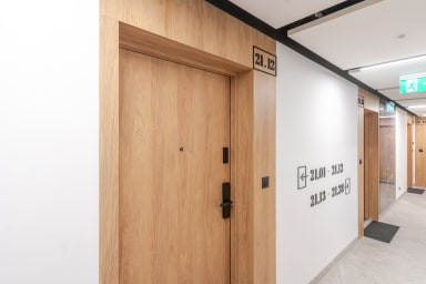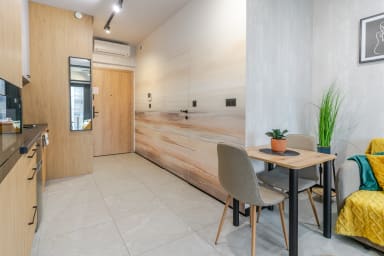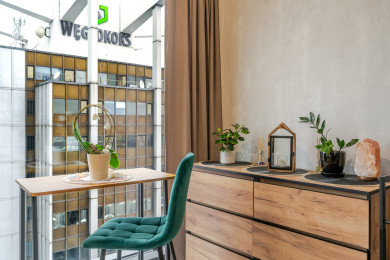 Global Park 21st View Studio is a luxurious and very pleasant apartment with a beautiful view of the Katowice skyline from the 2nd floor of a new 12-story building within the GLOBAL APARTMENTS complex. The building has 27 floors, including an underground parking garage, and is part of the Global Office Park complex, which has received multiple awards for its prestigious and modern architecture. Right next to the building is a restaurant where guests can order breakfast and coffee.