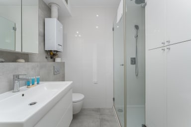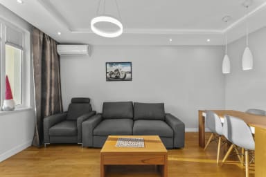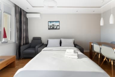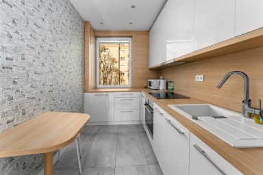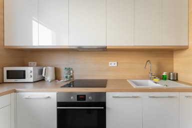 Nowa Huta Charming Apartment is a cozy apartment featuring a living room with a sofa bed, a bedroom with a comfortable double bed, a kitchen, a bathroom, and a balcony where guests can relax and enjoy a morning coffee or an evening glass of wine. It offers a range of amenities, including free WiFi, a TV, a washing machine, a hairdryer, an iron, a dishwasher, an electric stove, a fridge with a freezer, a kettle, an oven, a microwave, and kitchen accessories. Additionally, the apartment has air conditioning, providing exceptional comfort, especially during hot days. Guests can use the shared outdoor parking, though spaces are not guaranteed.