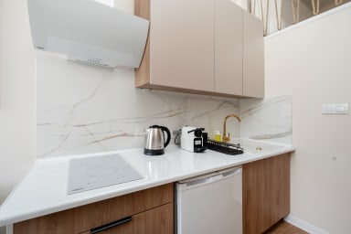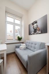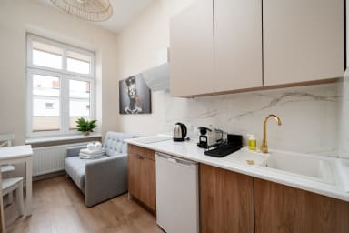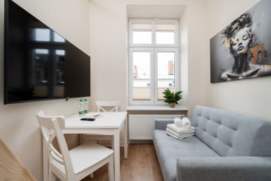 Łódź Downtown Studio 7C with Mezzanine is an apartment located in an excellent area of Łódź, just a 10-minute walk from Piotrkowska Street. Piotrkowska is the most iconic and historic pedestrian street in Poland, full of life and a unique atmosphere. A wide variety of restaurants, cafés, unique boutiques, souvenir shops, and nightclubs makes the street an ideal place for social gatherings. Piotrkowska Street is also the epicenter of cultural events and activities, hosting concerts, film festivals, fairs, and various artistic events that attract both locals and tourists. Piotrkowska is also famous for its vibrant nightlife—especially in the evenings, when numerous bars, pubs, and clubs come alive, turning it into the main entertainment hub for residents and visitors alike.