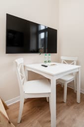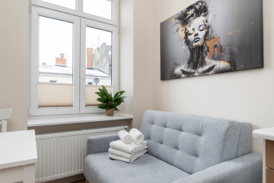 In the immediate vicinity, there are many tourist attractions worth visiting, such as the Museum of Light, the Museum of the City of Łódź located in the historic Poznański Palace, the Museum of Art, the Łódź Philharmonic, and the Grand Theatre. Within easy reach, guests will find numerous shops, cafés, restaurants, entertainment venues, service points, as well as shopping centers such as Manufaktura and Galeria Łódzka. The apartment is very well connected to the rest of the city thanks to numerous bus and tram stops, as well as the Łódź Kaliska railway station. This allows guests to easily reach other attractions offered by the city, including the Atlas Arena, the impressive zoo, the botanical garden, and the Fala Aquapark.