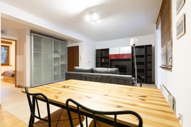 Additionally, the apartment is less than a 35-minute walk from Droga pod Reglami in Zakopane. Droga pod Reglami is a scenic mountain route in the Polish Western Tatras and a very popular tourist trail among hiking enthusiasts. It offers not only beautiful mountain views but also the opportunity to observe the unique flora and fauna of the Tatra Mountains. During hikes, visitors may encounter wild animals, and in the summer season the area delights with colorful flowers and herbs. Less than 3 kilometers from the apartment is the Polana Szymoszkowa ski resort. In the immediate vicinity, guests will find a variety of shops, restaurants, and service points. The apartment is very well connected with the rest of the city thanks to nearby bus stops, allowing guests to easily reach all attractions offered by Zakopane.