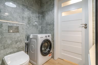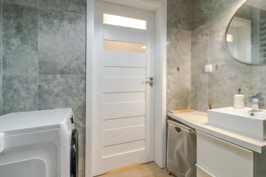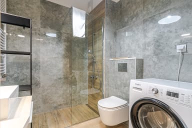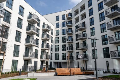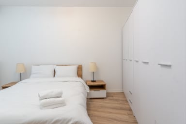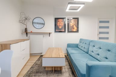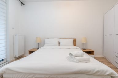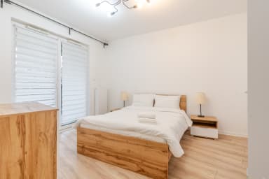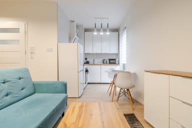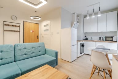 Strzelecka Bright Apartment features a living room with a sofa bed and kitchenette, a bedroom with a king-size bed, a bathroom, and a balcony where guests can relax and enjoy a morning coffee or a glass of wine in the evening. The apartment is equipped with Wi-Fi, a fridge with a freezer, a dishwasher, an induction hob, an oven, a microwave, a kettle, a washing machine, and kitchenware. An iron, vacuum cleaner, and hair dryer are also available. Guests may use a parking space (subject to availability and possible additional fees).
