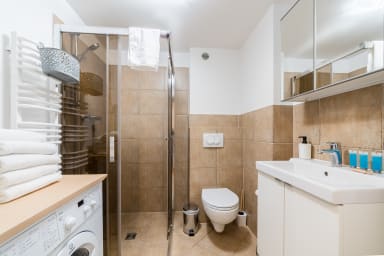 The neighborhood is full of shops (Żabka, Warzywniak na rogu, Chata Polska, Biedronka, Aldi), cafés (Kaferdam, Cafe Molecular, Różove, Faraway), restaurants (Weranda Caffee, Panino, Tasaky, Patio Prowansja, Eatalia Poznań, Vietgnam, and many others), entertainment venues (Bar Mostowa 33, NaPiwek Pub, Za Kulisami, Ice Bar, Hola Hola), and service points. The apartment is very well connected thanks to numerous nearby bus and tram stops, as well as the Poznań Garbary railway station. This makes it easy for guests to reach all the attractions Poznań has to offer.