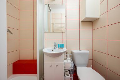 To help you start your stay comfortably, we provide a basic set of toiletries such as toilet paper, soap, shampoo, and shower gel. Please note that these items are provided in limited quantities and are intended mainly for the first days of your stay. For longer stays, we recommend purchasing additional supplies according to your needs.