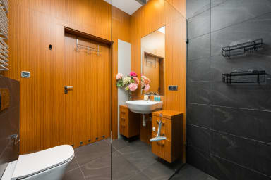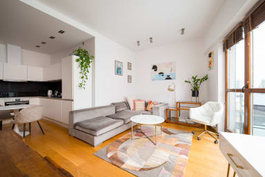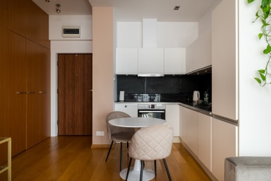 Wilanów Urban Chic Apartment is a stylishly furnished apartment featuring a living room with a sofa bed and kitchenette, a bedroom with a comfortable double bed, a bathroom and a spacious balcony where guests can relax with a morning coffee or an evening glass of wine. Guests can enjoy many amenities provided by the apartment, including free WiFi, a TV, a washing machine, an iron, a hair dryer, an induction hob, a dishwasher, an oven, a kettle, a fridge with a freezer, a toaster, a Nespresso coffee machine and kitchenware. The apartment is also equipped with air conditioning, ensuring exceptional comfort, especially on hot days. A parking space in the underground garage is also available for guests.
