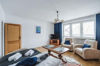 Konopnickiej Harmony Apartment is a cozy apartment featuring a living room with a sofa bed, a separate kitchen, a bedroom with a double bed, a bathroom, and a spacious balcony where guests can relax and enjoy a morning coffee or an evening glass of wine. Guests have access to a range of practical amenities, including free WiFi, a TV, an iron, a hairdryer, a fridge with freezer, a dishwasher, a gas stove, an oven, a microwave, a kettle, and kitchen accessories. Parking is available for guests; however, availability is not guaranteed and additional charges may apply.