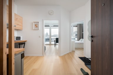 Aleja Krakowska Harmony Apartment is located in an excellent area, just a 10-minute taxi ride from Chopin Airport. Nearby, you will find green spaces such as Szczęśliwicki Park, which is very popular among sports and recreation enthusiasts. The park offers basketball courts, beach volleyball courts, tennis courts, and cycling paths. It is an ideal place for jogging or Nordic walking and active outdoor relaxation.