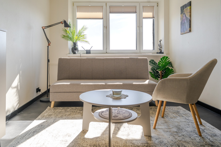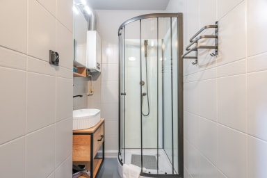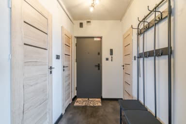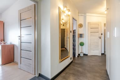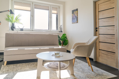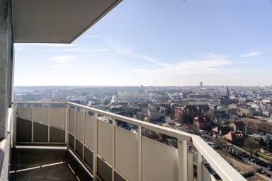 The apartment offers an impressive view of the Katowice skyline and the entire Upper Silesia region, with picturesque mountain ranges visible on the horizon. On clear days, you can admire the Beskid Mountains, and with exceptionally good visibility, even the majestic Tatra Mountains can be seen.